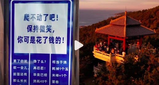 景区指示牌被网友吐槽嘲讽感拉满:为游客鼓舞士气,由年轻人设计