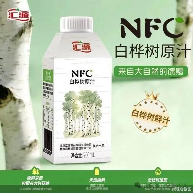 产品宣传页面和包装上显示,汇源NFC白桦树原汁是由北京汇源食品饮料有限公司与林海森林经营管理有限公司联合出品。
