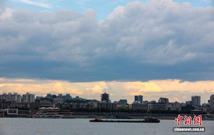 图为汉口江滩上空蓝天与乌云同现,宛如大自然绘就的“阴晴交界图”。中新社记者 张畅 摄