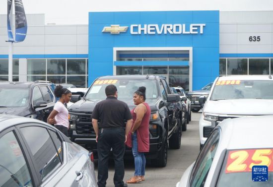 7月22日,在美国加利福尼亚州洛杉矶县科维纳市,顾客挑选美国通用汽车公司旗下品牌雪佛兰汽车。新华社发(曾慧摄)