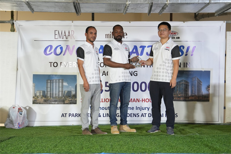 中铁十八局迪拜公司迪拜山庄项目成功获得1250万安全工时证书。中铁十八局迪拜公司供图