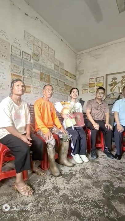 女孩考取北大家中墙贴满奖状 土路迎来北大通知书