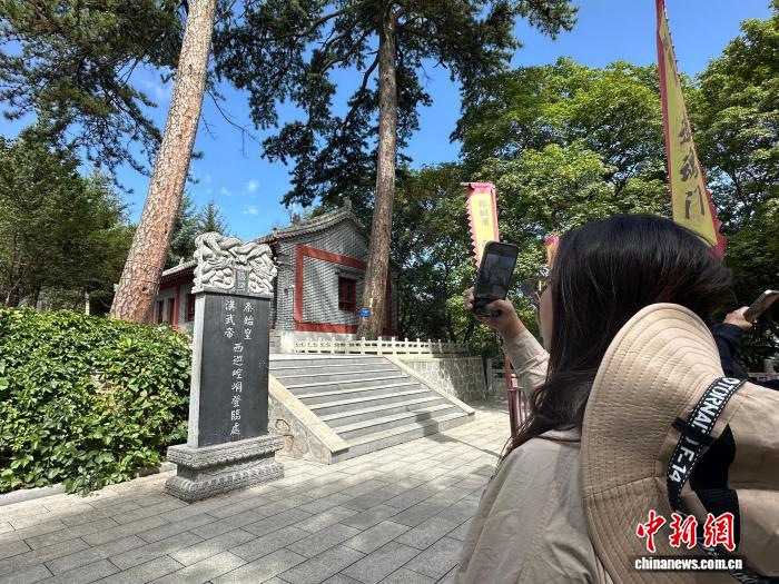 图为台青们在崆峒山上拍照打卡。王牧雨 摄