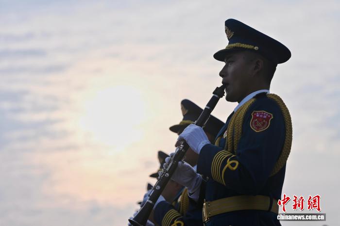 9月3日,纪念中国人民抗日战争暨世界反法西斯战争胜利80周年大会在北京隆重举行。图为纪念大会开始前,中国人民解放军联合军乐团在排练。中新社记者 赵文宇 摄