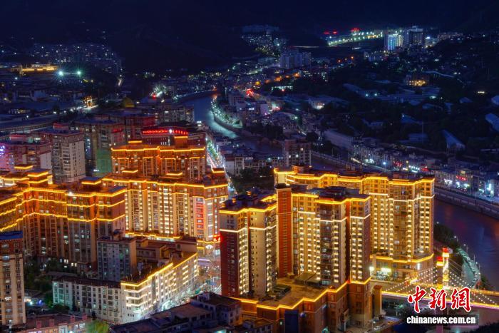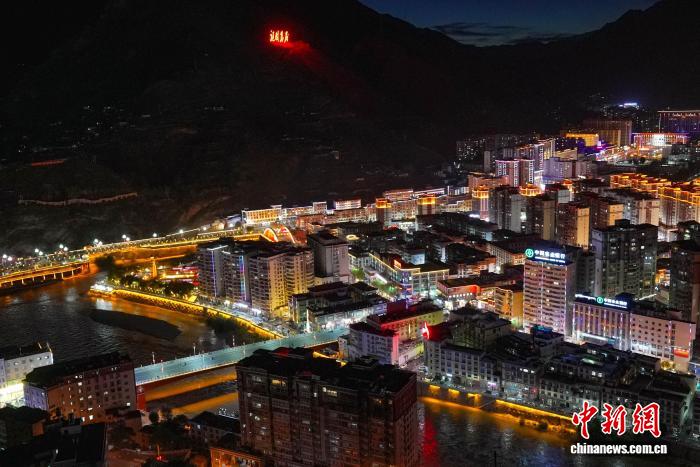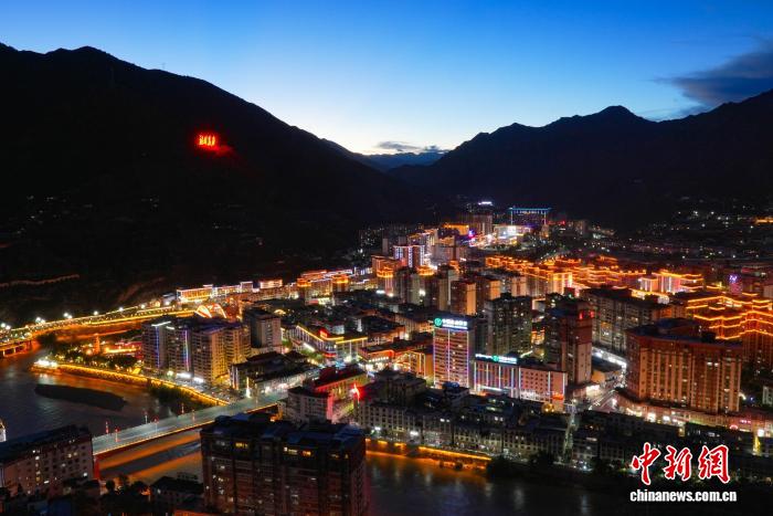 西藏昌都夜幕下的江河城景