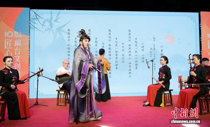 2025年4月,台湾歌仔戏艺人王贵芬(左三)在福建南平举行的第十届“匠心独运”闽台文创周上演绎歌仔戏。(受访者供图)