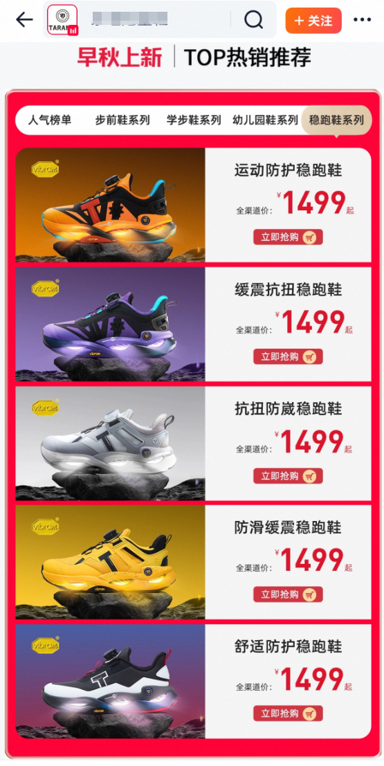 稳稳鞋的成功,让泰兰尼斯看到了大单品的爆发力。今年8月,开学季之前,公司推出针对学龄儿童的“稳跑鞋”。