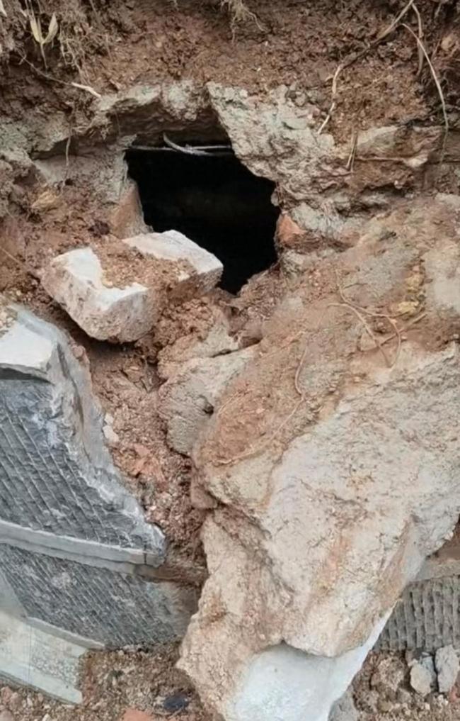 今年九月初,家人发现父亲坟墓上的草和泥土被人动过,原来是有人把在此筑巢安家的蜜蜂捉走了。当时对墓地破坏不大,家人也就没说什么。然而,不久前竟有人去墓地打出一个盗洞,对墓地造成很大破坏。9月24日,张女士的堂哥路过父亲的墓地时,意外发现墓地的石头被人撬开,墓穴也被撬了一个洞口。这个洞口正是此前蜜蜂安家筑巢的地方。张女士分析,可能是蜜蜂被人盗走后,有人想到墓穴里还有蜂巢,便撬开墓穴盗取里面的蜂蜜,因此做出了这种违背伦理的行为。