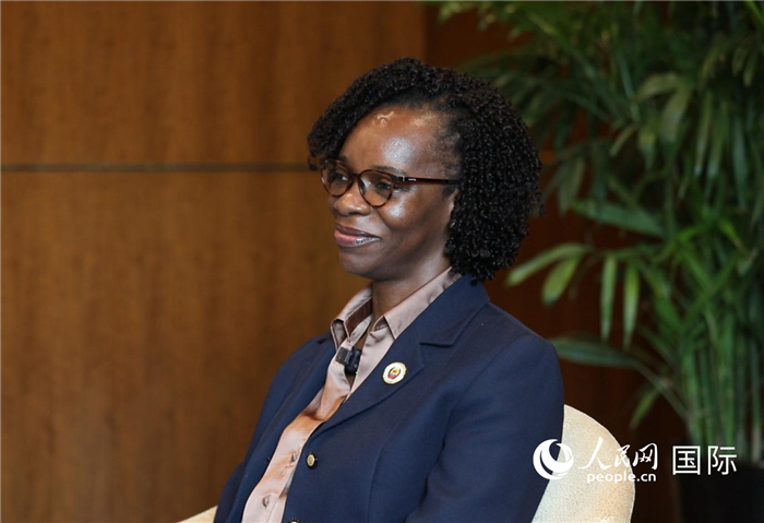 莫桑比克劳动、性别与社会行动部长伊韦特·阿拉内接受人民网专访。人民网记者 刘宁摄