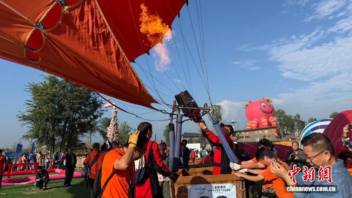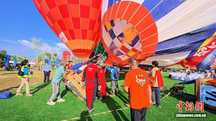 图为参赛选手为热气球热充气。杨予頔 摄