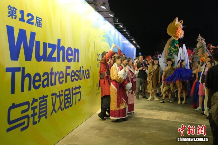10月16日,观众在现场合影留念。 当日,第12届乌镇戏剧节在浙江嘉兴乌镇开幕。本届戏剧节汇集了来自10个国家和地区的25部剧目,将在接下来的11天里,于乌镇的10个剧场进行演出。中新社记者 曹丹 摄