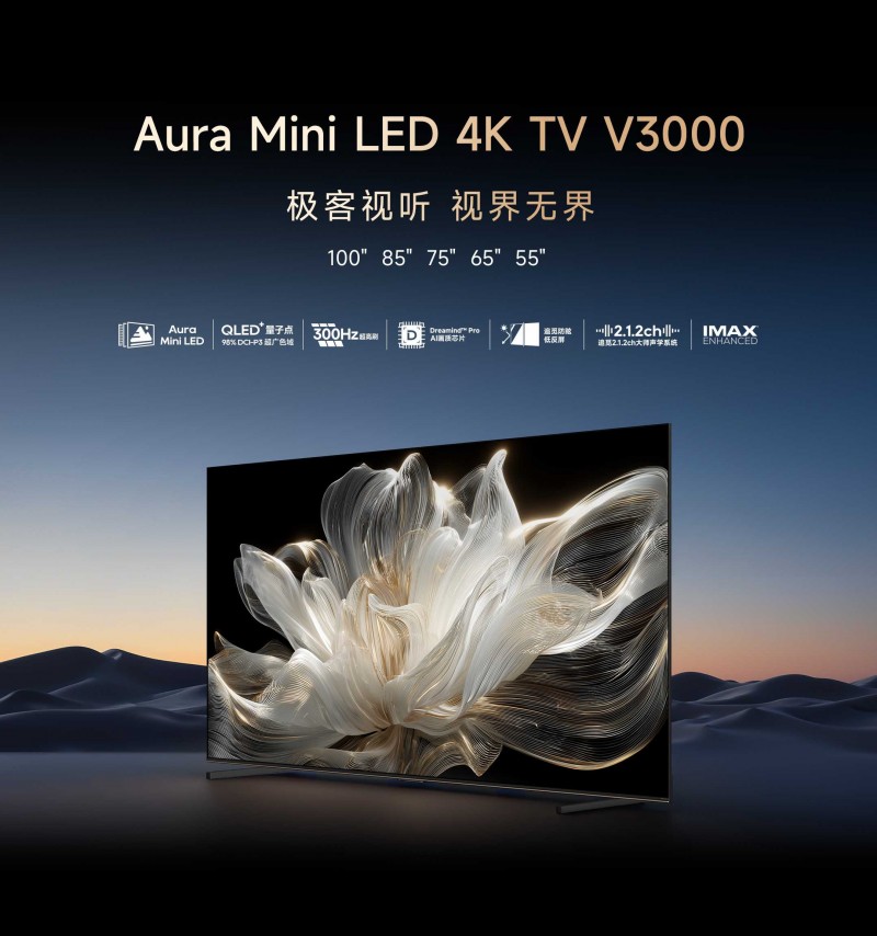 作为本次参展的核心战力,追觅V3000系列直接瞄准国内高端市场,把"全能客厅C位"的底气都藏在了技术细节里。它搭载的"AuraMini LED臻彩显示方案"堪称画质buff,融合QLED与Mini LED双技术优势,10亿色显搭配98% DCI-P3色域覆盖,让电影里的落日熔金、森林秘境都能精准还原。更亮眼的是独家"黑晶臻彩屏",1.8%的超低反光率彻底解决了白天看剧的反光烦恼,即便阳光直射屏幕,暗场里的发丝细节、亮部的通透质感也清晰可见,再加上178°广视角和20000:1超高对比度,客厅每个角落都是"黄金观影位"。
