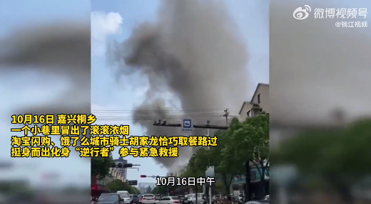浓烟中逆行!小巷起火外卖小哥逆行疏散人群