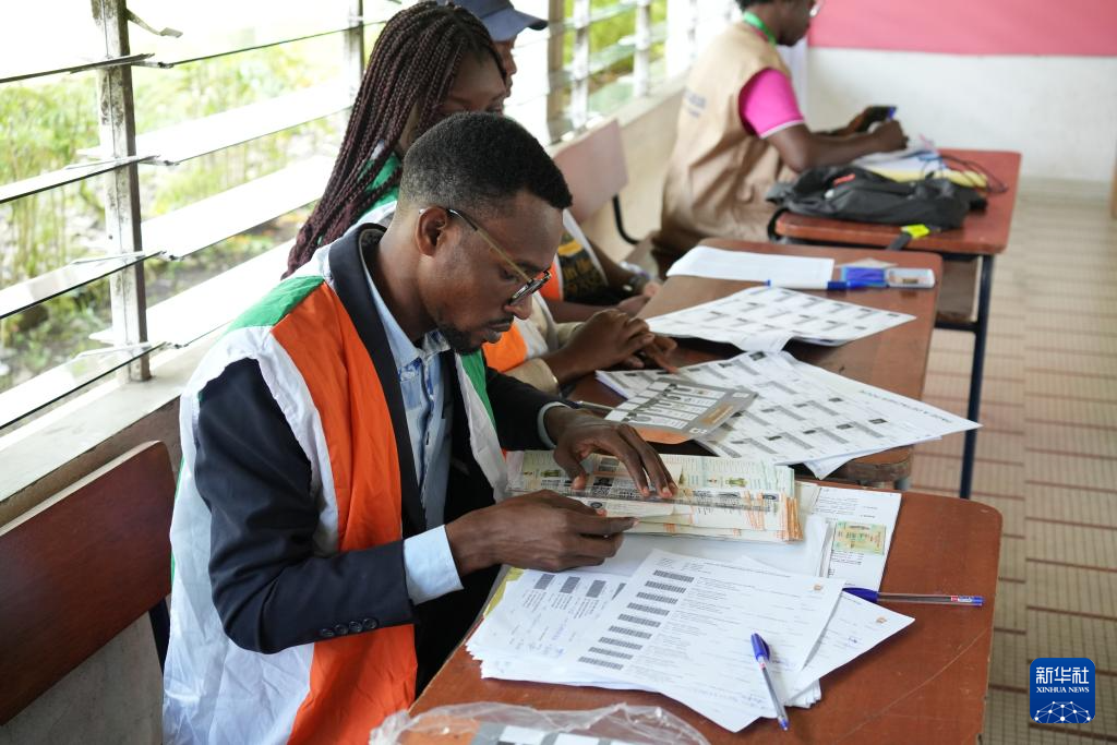 10月25日,工作人员在科特迪瓦经济首都阿比让的一处投票站核实选民信息。新华社记者 张健 摄