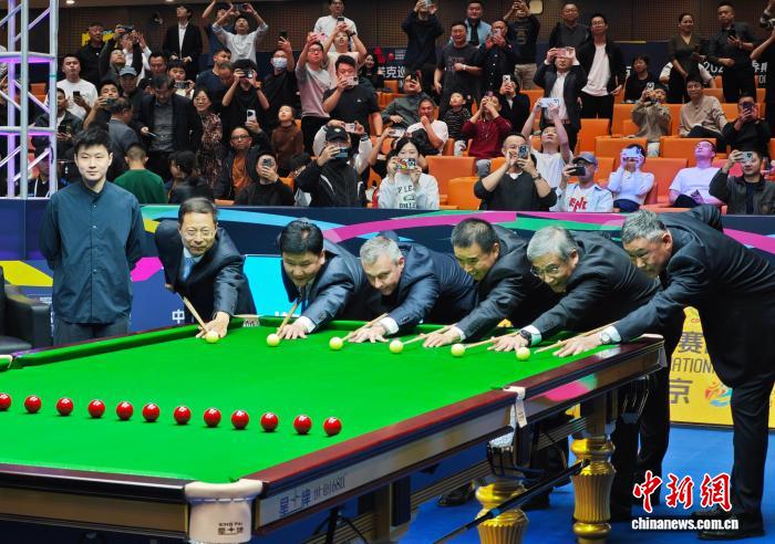 11月2日,2025世界斯诺克巡回赛国际锦标赛在南京开赛,丁俊晖、赵心童、奥沙利文等高手亮相赛场。图为开杆仪式。中新社记者 泱波 摄