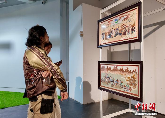 图为参观者在观看展出的作品。何美锟 摄