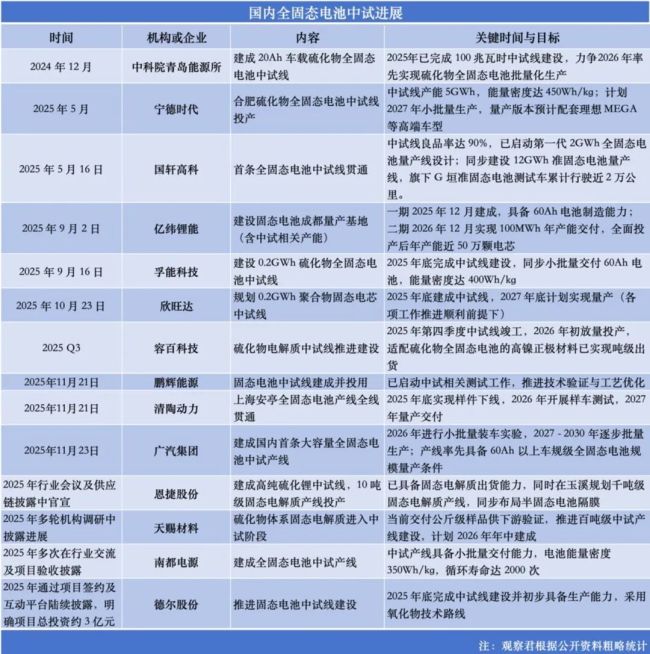 当然,术语、分类、技术的厘清只是我国率先卡位标准制定权之举,亦只是为产业链赢得战略主动的一个缩影。去年以来,支持固态电池技术之政策更为密集的落地,工信部等部委设立60亿元全固态电池研发专项基金后,今年的《电子信息制造业2025-2026年稳增长行动方案》《新型储能制造业高质量发展行动方案》等文件中均明确提及要加快固态电池的发展。