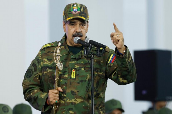 11月25日,委内瑞拉总统马杜罗在加拉加斯举行的游行活动上发表讲话。新华社发