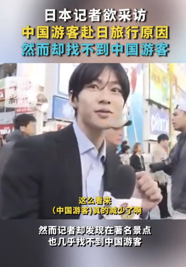 日本记者街头采访找不到中国游客。12月,中日外交关系紧张导致中国赴日游客锐减,大阪、京都等地商家出现明显分化。章鱼烧店中国顾客减半!
