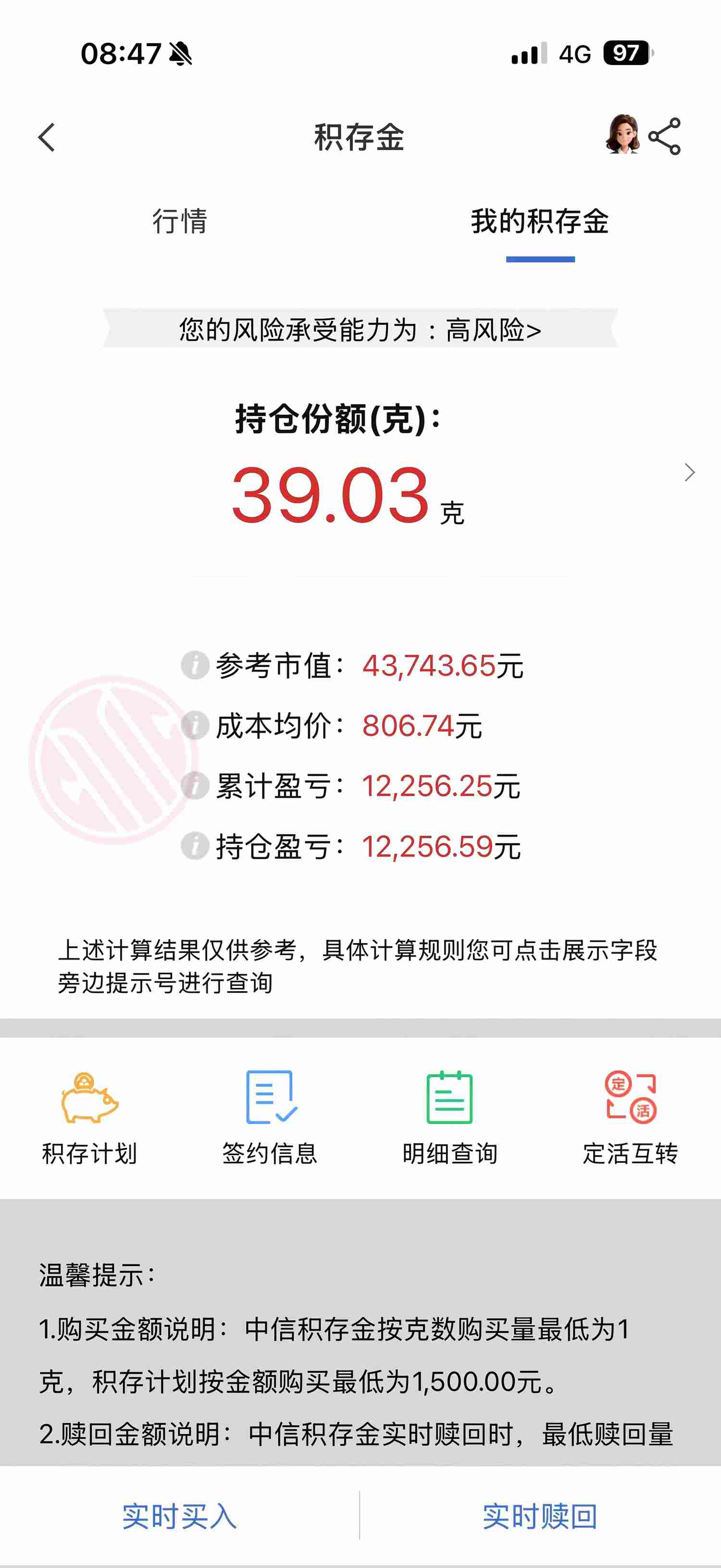 谈及是否持金过年,马女士称,她购买银行积存金时价格较低,而且不着急用钱,金价大幅波动对她没有太大影响,所以她选择持金过年。“之前本来想做黄金短线,但体验感一直不太好,改做长线后,每逢黄金大幅回撤,我会补几克黄金。”截至发稿,马女士称她的持金成本为806.74元/克,浮盈约12256元。