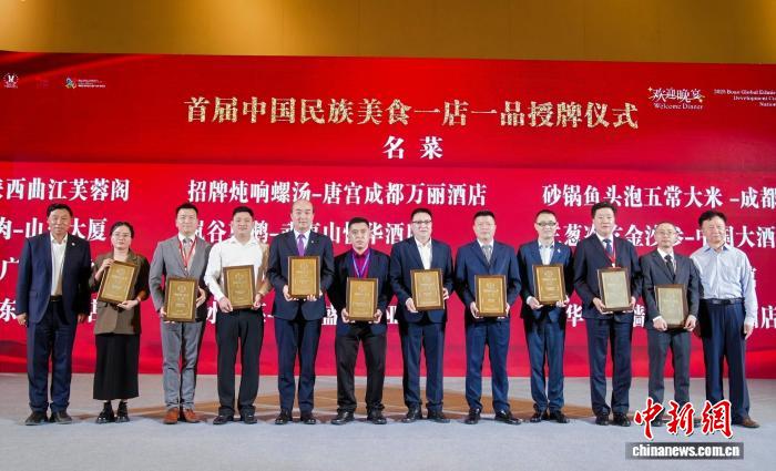2025年10月25日,在海南博鳌举行的第二届博鳌全球民族文旅产业发展大会暨首届中国民族品牌饭店年会上,首届中国民族美食一店一品授牌仪式举行。(中国民族贸易促进会文化与旅游工作委员会秘书处 供图)