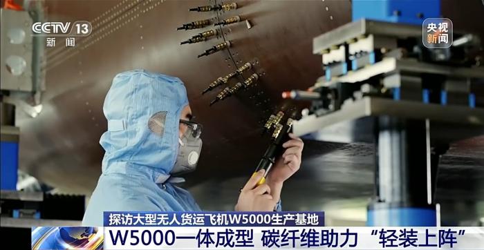 其实W5000无人货运飞机身上,还藏着不少黑科技。它大量采用碳纤维复合材料,比铝合金轻了近30%,强度却更高,这就意味着,它既能省油,又能飞得更远、拉得更重。更厉害的是,它采用一体成型技术,少了成千上万个铆钉,机身表面更光滑,飞行时的阻力也更小。