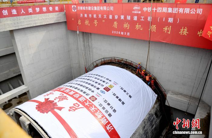 中新网济南3月20日电 (记者 沙见龙)3月20日上午,随着开挖直径15.06米的“启航号”盾构机精准顶推到位,由济南城市建设集团投资建设、铁四院设计、中铁十四局承建的济南市航天大道穿黄隧道南线盾构顺利贯通,标志着连接济南遥墙国际机场与新旧动能转换起步区的跨黄通道首线告捷。