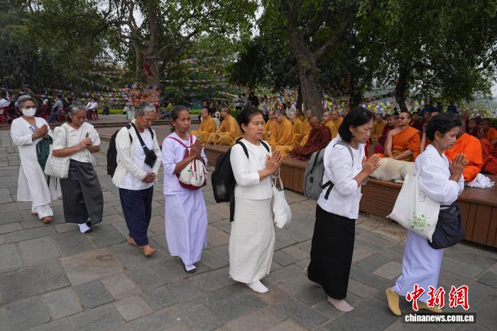 3月20日,第三届蓝毗尼国际和平节在佛祖诞生地尼泊尔蓝毗尼启幕。和平节由中国驻尼泊尔大使馆、尼泊尔奥委会、尼泊尔旅游委员会、蓝毗尼开发委员会等联合主办,包含国际禅修节、国际和平音乐会、国际和平马拉松等多项文体活动。当天清晨,近400名来自各国的僧侣、民众及游客在世界文化遗产摩耶夫人寺旁闭目冥想禅修,祈愿世界和平。中新社记者 崔楠 摄