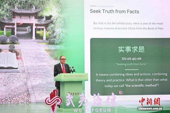 22日,第三届武夷论坛在福建南平开幕。图为外文出版社荣誉英文主编大卫·弗格森作主旨演讲。中新网记者 张斌 摄