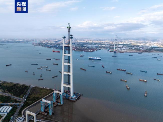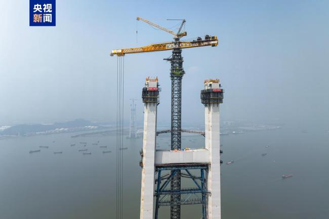 世界最高双层悬索桥主塔亮相珠江口 创五项世界第一