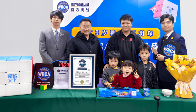 近日,延吉3岁女童王玥琛在WRCA益智类认证官50项世界纪录获得者叶佳希老师与数字华容道世界纪录获得者叶晨佾老师的见证下,用19秒还原了三阶魔方,创造了最小年龄在20秒内还原三阶魔方的WRCA世界纪录。