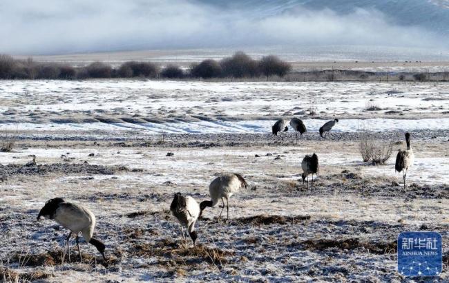 黑颈鹤北返红原大草原 优雅精灵成亮丽风景线