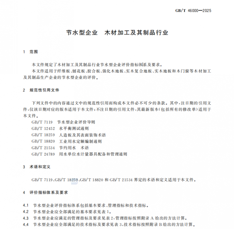 (图源:《GB/T 46000-2025节水型企业木材加工及其制品行业》)