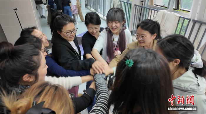 成都“围裙妈妈天团”成员一起加油鼓劲。记者 何浠 摄