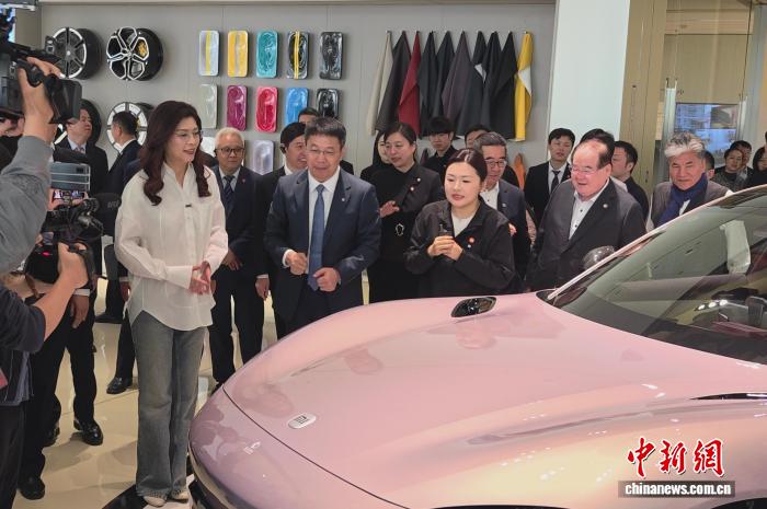 小米集团合伙人、总裁卢伟冰向郑丽文一行介绍了小米公司的发展情况,以及小米汽车的摩德纳技术架构等。在展厅里一台淡粉色的小米YU7型汽车前,郑丽文受邀上车体验,了解车辆的各项功能。