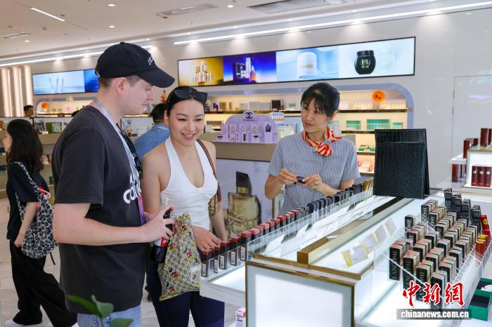 4月17日,在海南三亚德航FLY3跨境(零关税)体验城内,游人在此选购商品。中新网记者 骆云飞 摄