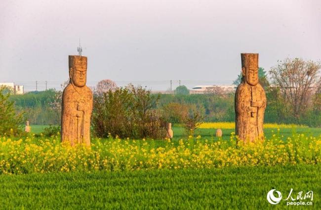 巩义宋陵又称“七帝八陵”,是我国现存最完整的古代陵墓造像群之一,被誉为“露天石刻艺术博物馆”。春日时节,宋陵附近的小麦长势良好。