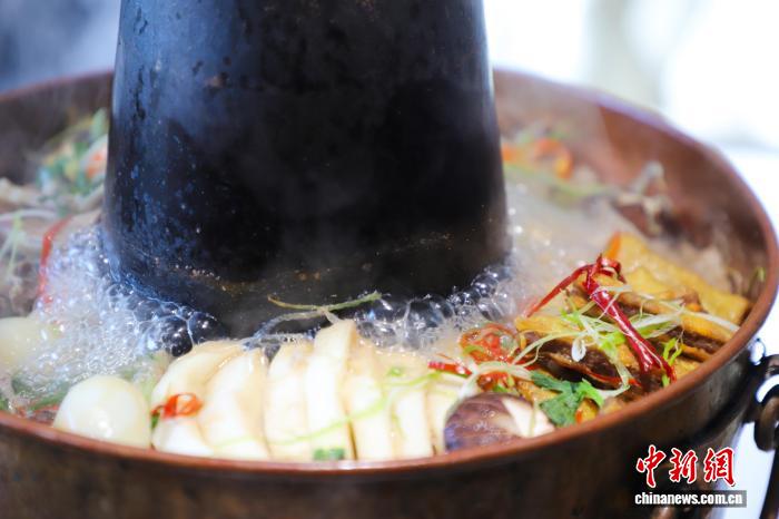 “河州暖锅”以其独特的铜锅、炭火慢煨和丰盛的“全家福”式食材而闻名,是当地人节庆家宴必备菜肴。(资料图)临夏市融媒体中心供图