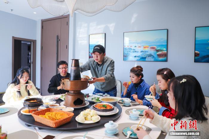 来自各地的游客,在临夏享用“河州暖锅”。(资料图)临夏市融媒体中心供图