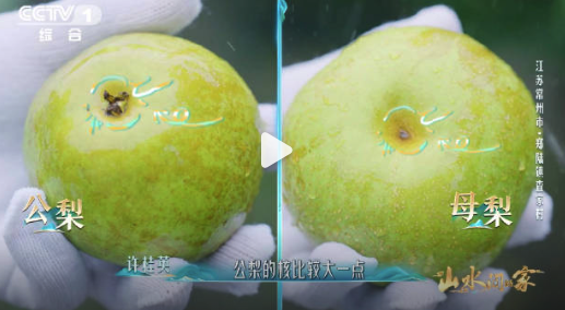 江苏常州查家村盛产翠冠梨,脆甜无渣,个大饱满,但果核小。这里的果农手一掂就知梨重9两2。村民介绍,梨子的甜度与公母有关,母梨比公梨甜。如何区分公母?只需查看梨子底部的“肚脐”,公梨底部带叶,母梨的底部则比较光滑。...
