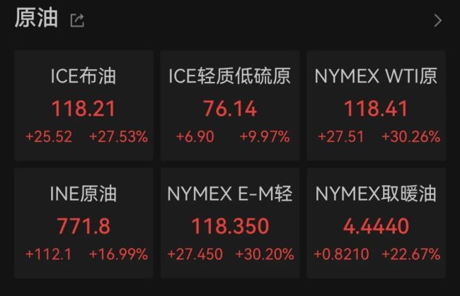 受中东战争动荡影响,今日WTI原油期货暴涨超30%。