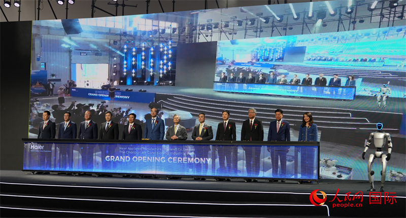 人民网曼谷9月23日电(记者简承渊)23日,海尔泰国春武里空调工业园正式投产,该工业园年规划产能600万套,覆盖多品类空调产品,是中国品牌在东南亚地区规模最大的空调制造基地。泰国前总理、工业部长等政要