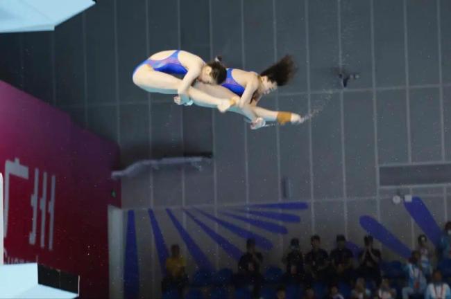 11月2日,第十五届全运会跳水比赛拉开序幕。在晚间进行的女子团体双人10米台项目中,两届奥运冠军、广东选手全红婵与队友王伟莹搭档出战,这是全红婵时隔五个月后重返赛场