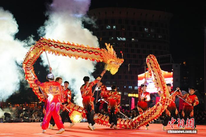 图为现场的舞龙表演。胡勇 摄 图为现场各具特色的龙狮表演。胡勇 摄 图为舞狮表演。胡勇 摄