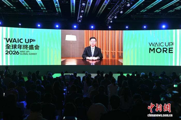 图为香港特区行政长官李家超作视频致辞。中新网记者 李志华 摄 图为中国工程院外籍院士、香港科技大学首席副校长郭毅可以“从科研到应⽤:⾹港AI发展路径与‘港话通’的桥梁作⽤”作主题演讲。中