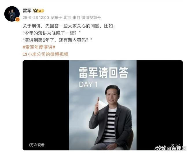 昨日,2025雷军年度演讲正式宣布定档9月25日。消息一出,迅速登上多个平台的热搜榜单。今年的雷军年度演讲相比往年有所推迟。在小米官方发布的短视频中,雷军解释了推迟的原因:为了蹭自家小米17的流量