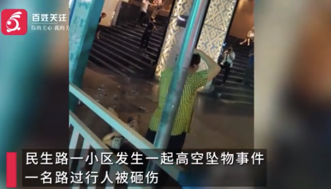 10月10日,重庆市渝中区民生路一商住小区发生一起高空坠物事件,一名路过行人被砸伤。视频显示,一名行人躺在人行道上,周围皆是碎石瓦砾。相邻商住小区下方的酒店门头的角沿有明显破损的痕迹。11日,酒店工作人员回应称,高空坠物是酒店楼上的住户弄下...