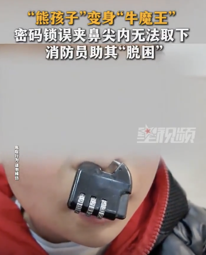 小孩用密码“锁”鼻 消防员:还玩吗?近日,湖南怀化。“熊孩子”变身牛魔王,男童将密码锁夹鼻尖内无法取下,消防员一分钟助其“脱困”。提醒家长朋友们:儿童安全无小事,家长需要时刻绷紧安全弦,小朋友们也要注意远离危险,安全第一!小孩用密码“锁”鼻...