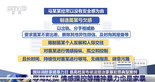 在山东临沂检察机关办理的马某某虐待案中,马某某与女友苗某确立恋爱关系后,二人租房共同生活,并与对方家长见面、参加对方家庭聚会,有结婚意愿。马某某经常以没有安全感为由,制造苗某亏欠感,以出轨、分手相威胁,要求苗某不要出差、删除其他异性微信、...